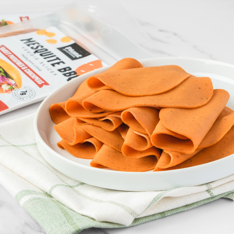 - Plant Provisions Mesquite BBQ Veggie Slices: These smoky veggie slices are made from real, wholesome ingredients (like sweet potato and chickpeas) and flavored with paprika and brown sugar for a hearty plant-based deli meat.